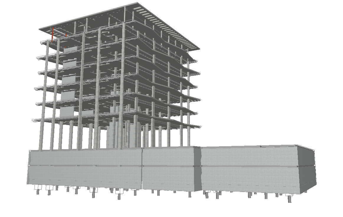 Edifício de habitação coletiva no coração de Coimbra. Estrutura em betão armado, fundações indiretas por estacas e contenção periférica.