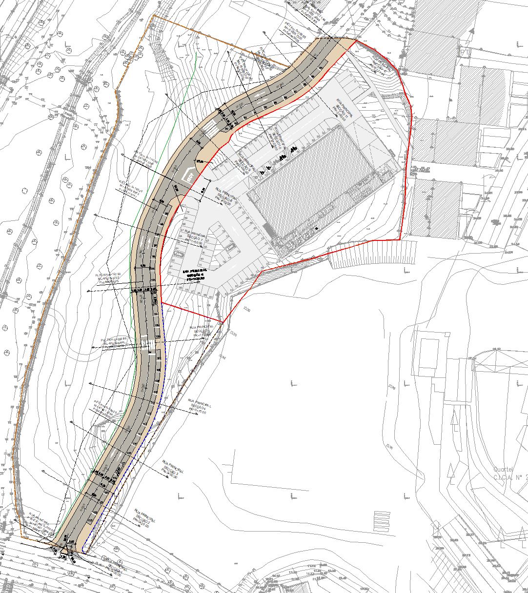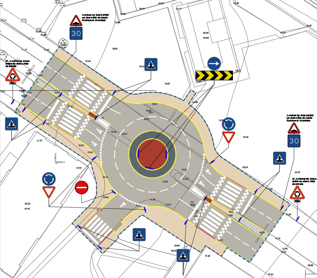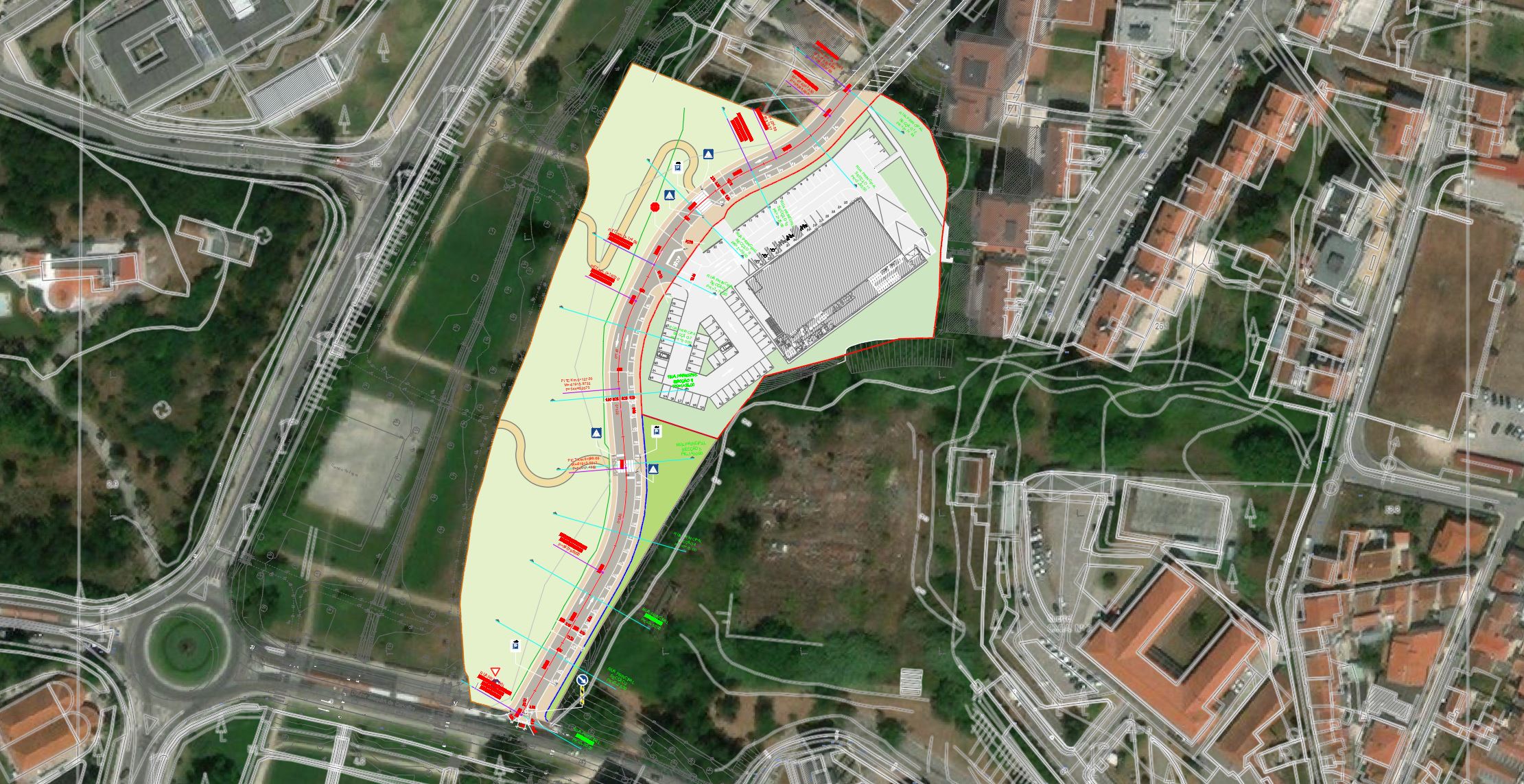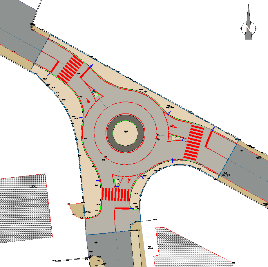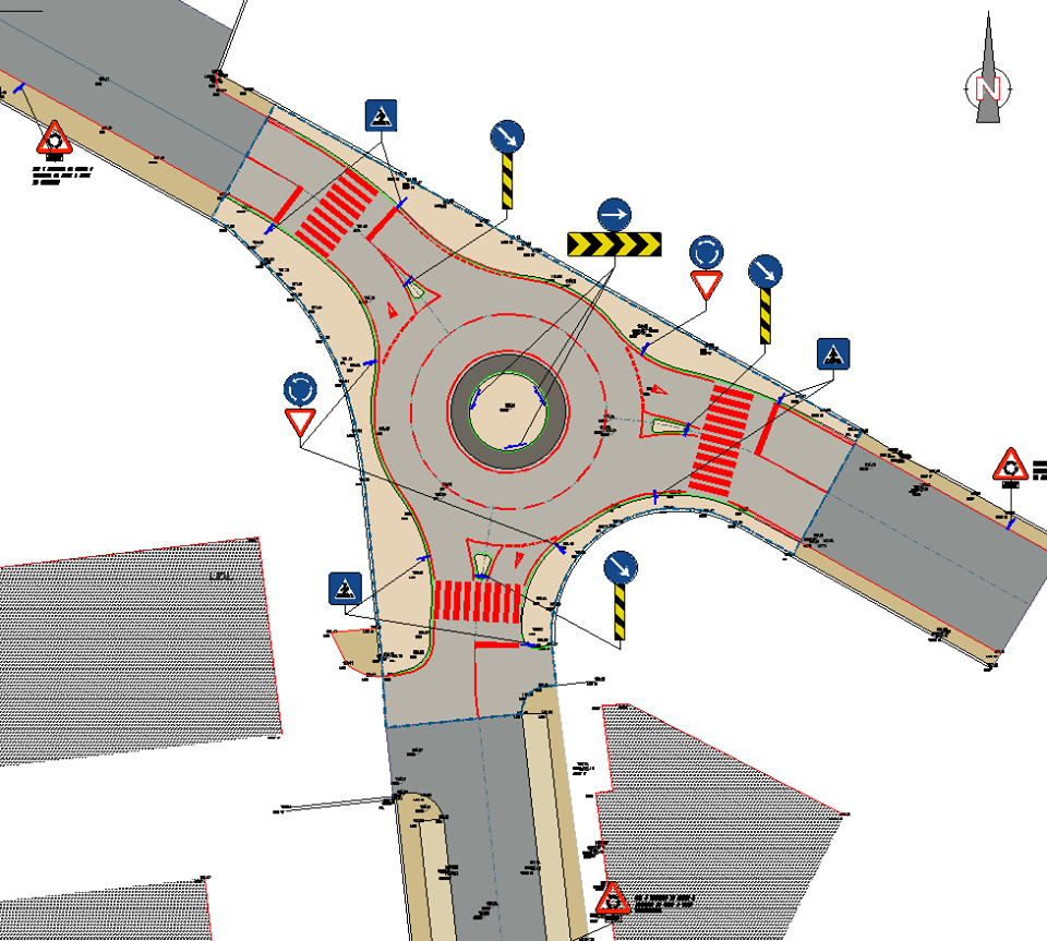 Projeto de execução de uma intersecção urbana com recurso rotunda.