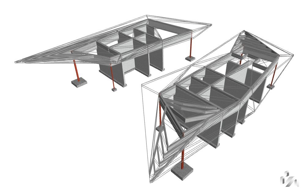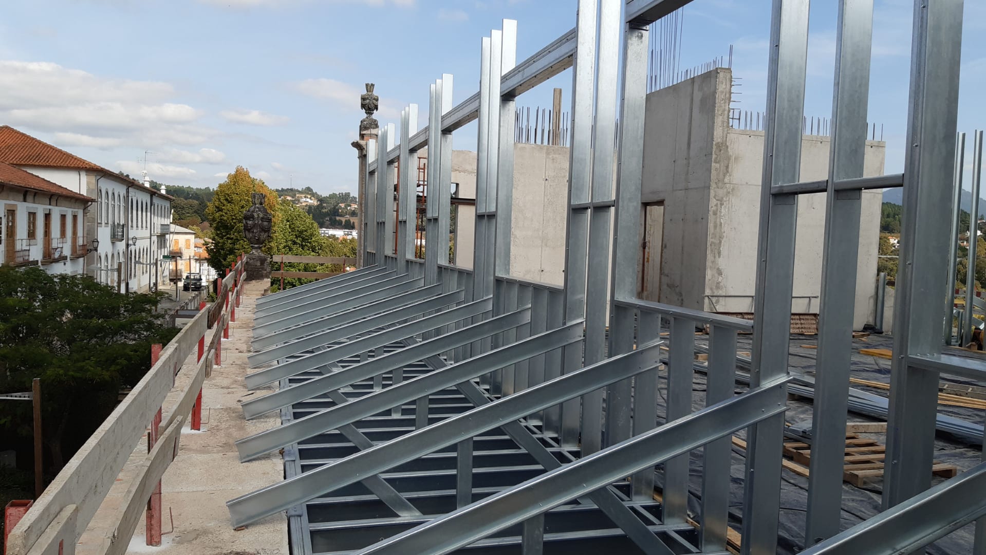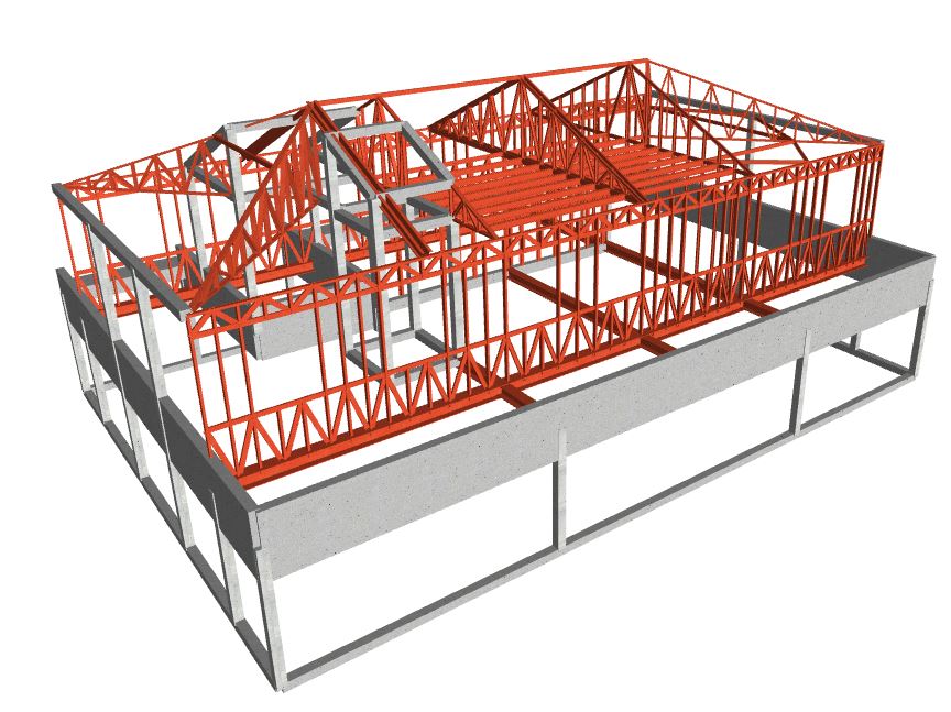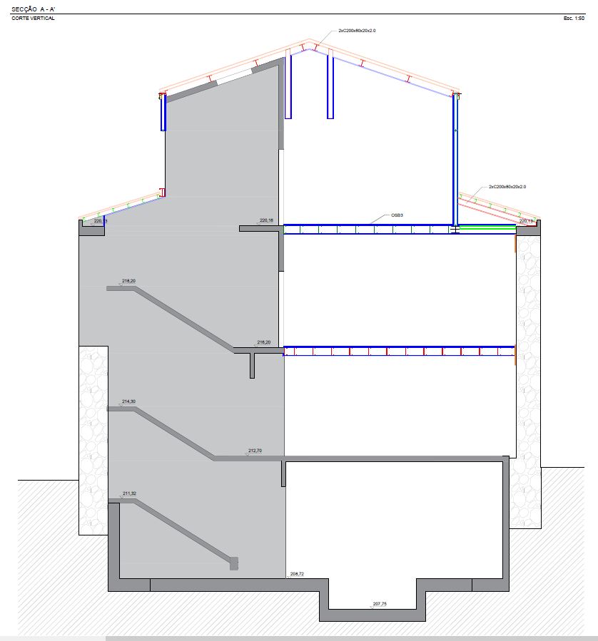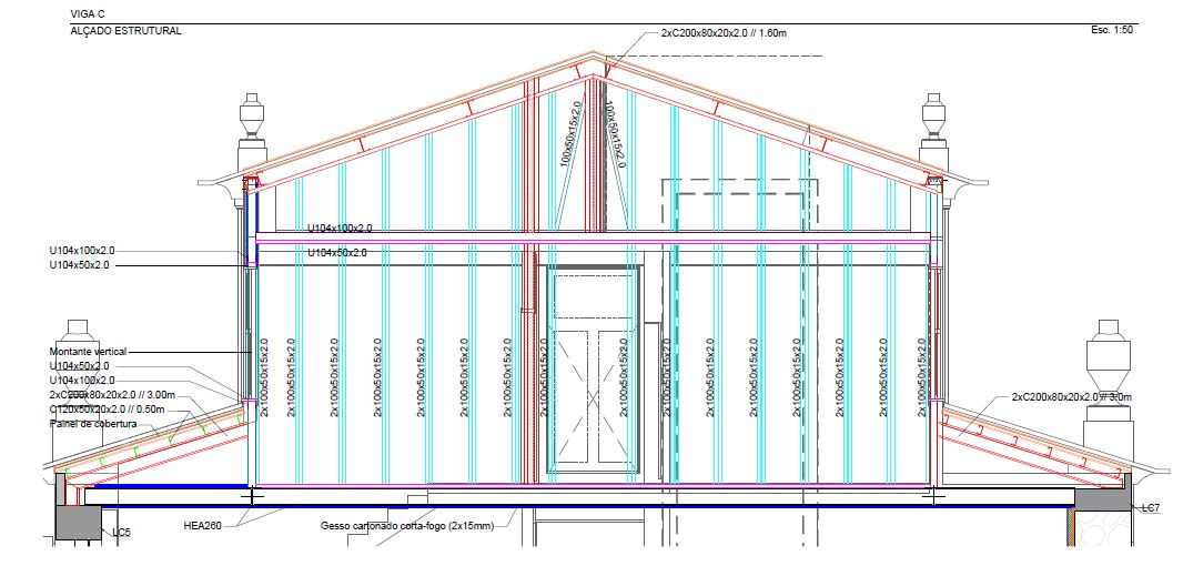 Para a estrutura de pavimentos e paredes estruturais foram usados perfis metálicos do tipo laminado e do tipo enformado a frio (sistema tipo LSF).